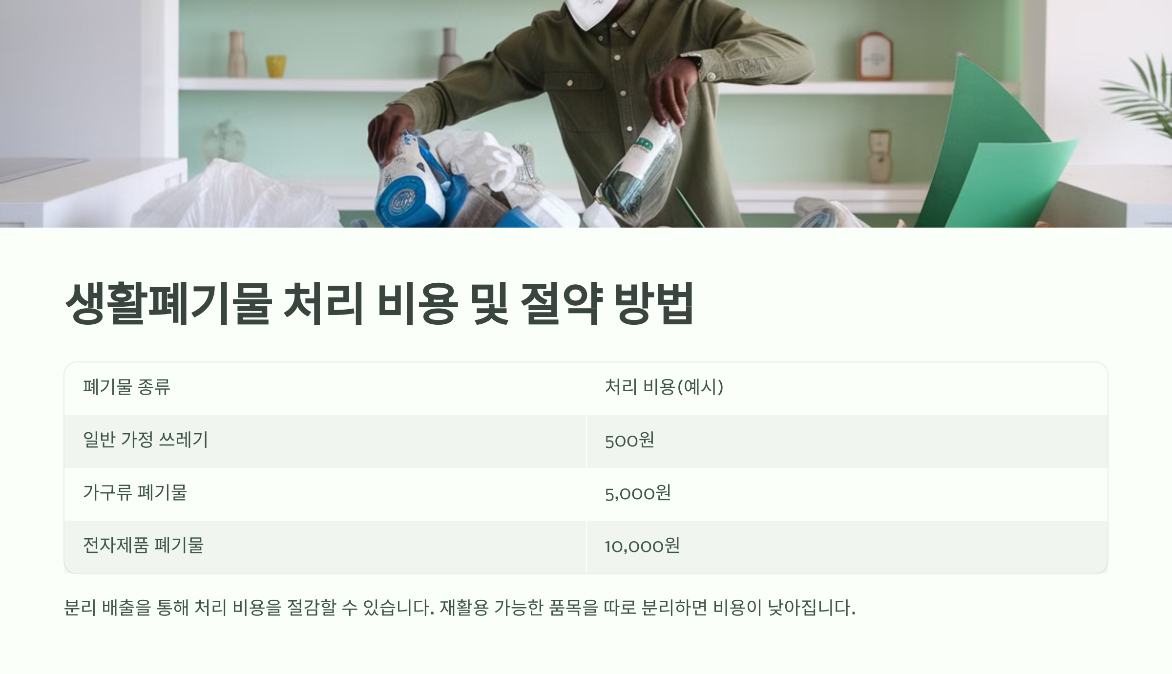 | 폐기물 종류 | 처리 비용(예시) |
